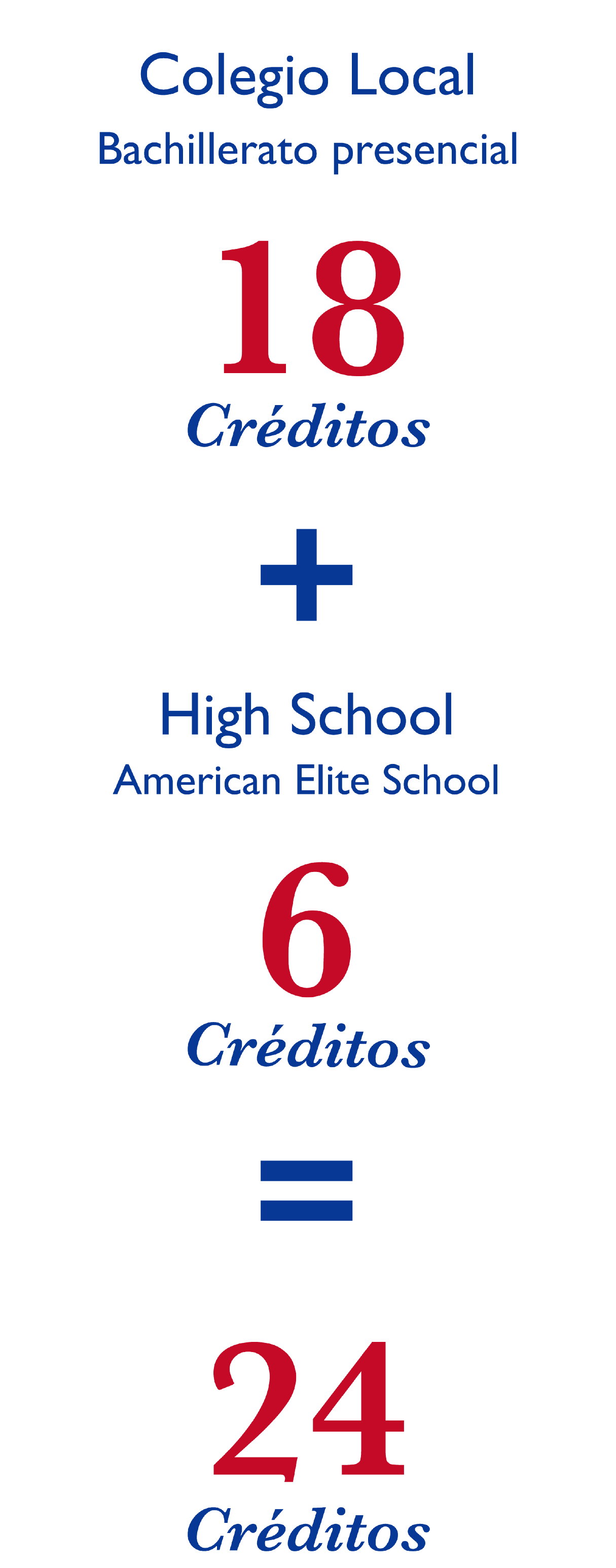 Hasta 18 asignaturas serán convalidadas con los resultados académicos del país del estudiante y las 6 asignaturas restantes a cursar por el alumno serán impartidas por American Elite School (USA), además complementará su plan de estudios con 2 cursos electivos obligatorios.